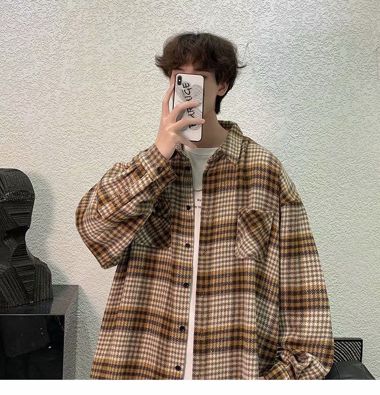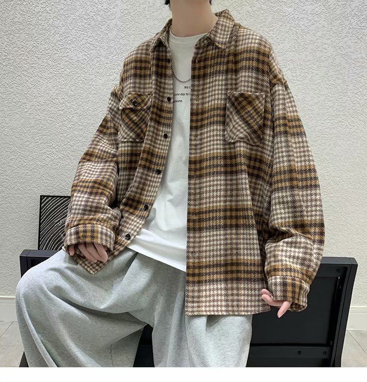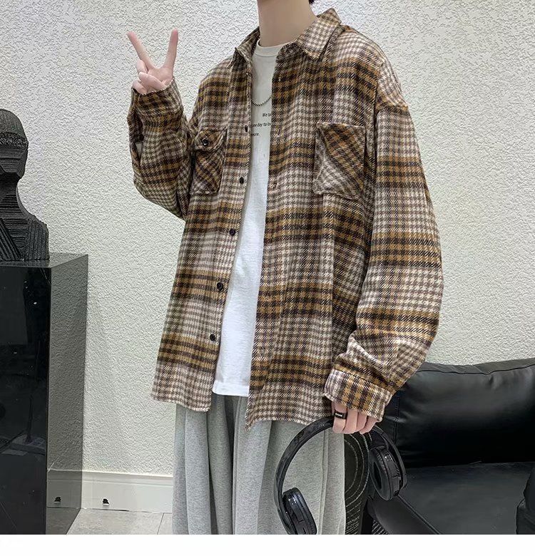 Hong Kong Style Loose Couple Contrast Shirt Jacket