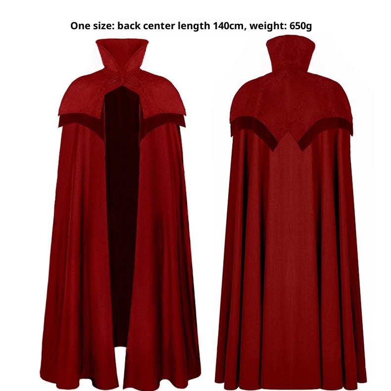 Color: Jacquard cloak, dark cloak, stand collar buckle cloak Black, stand collar buckle cloak Red
