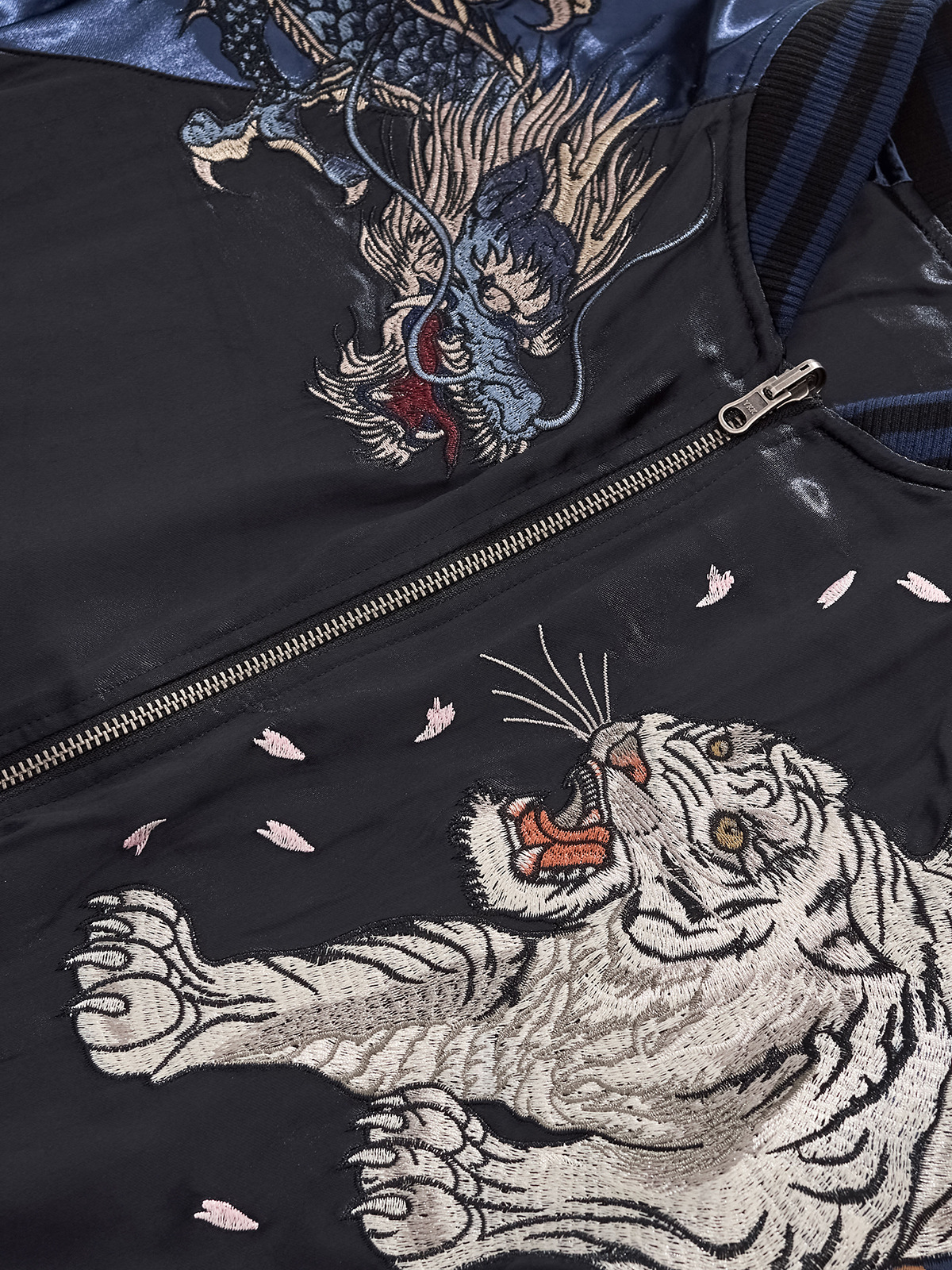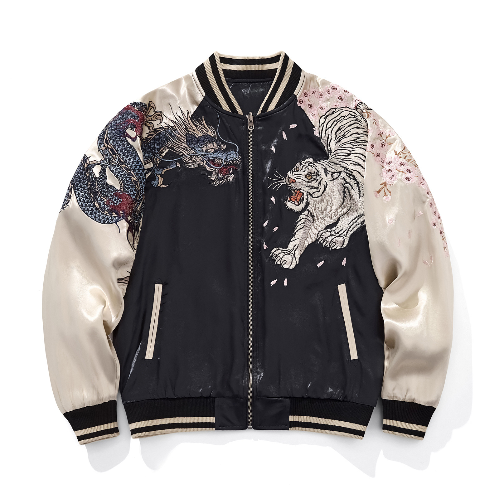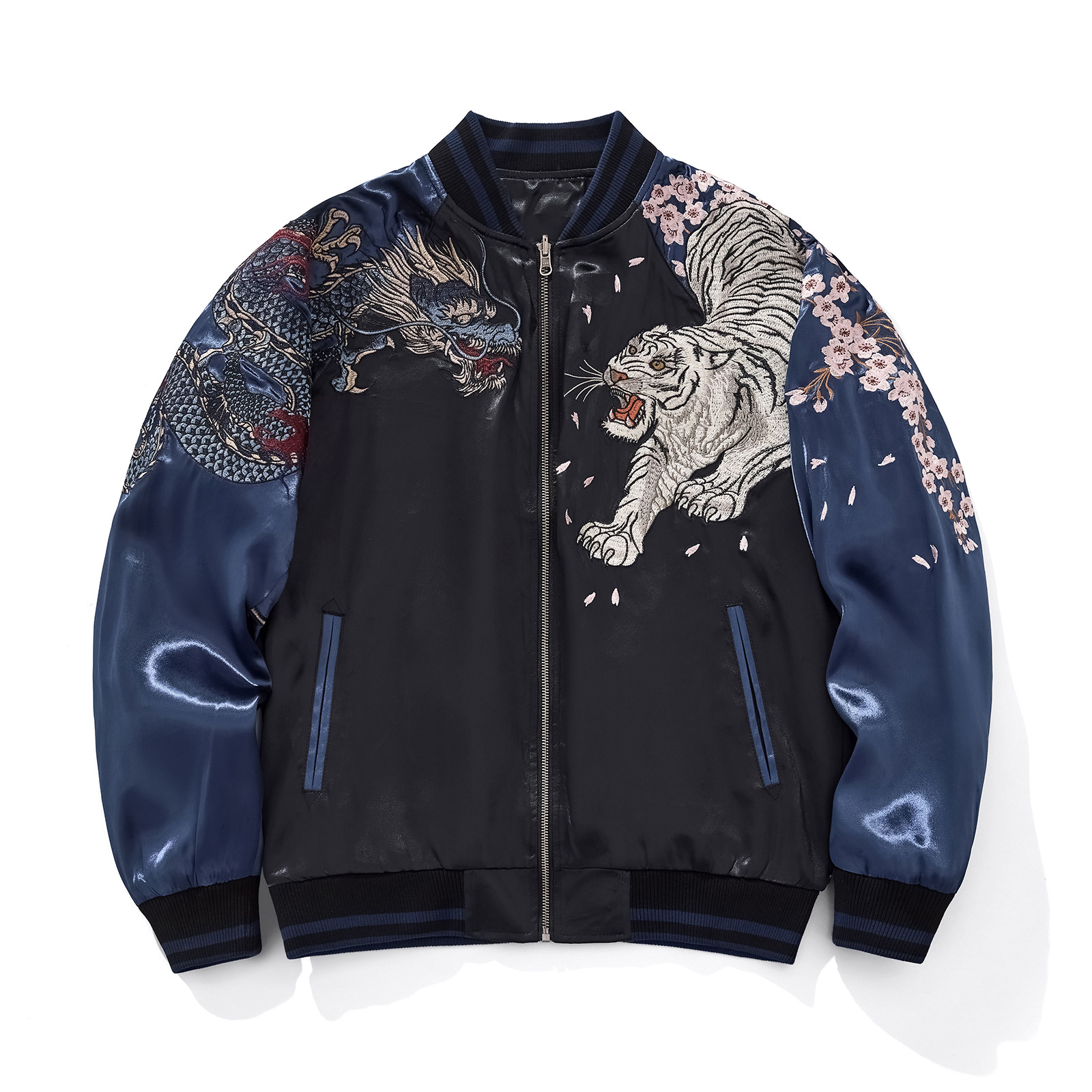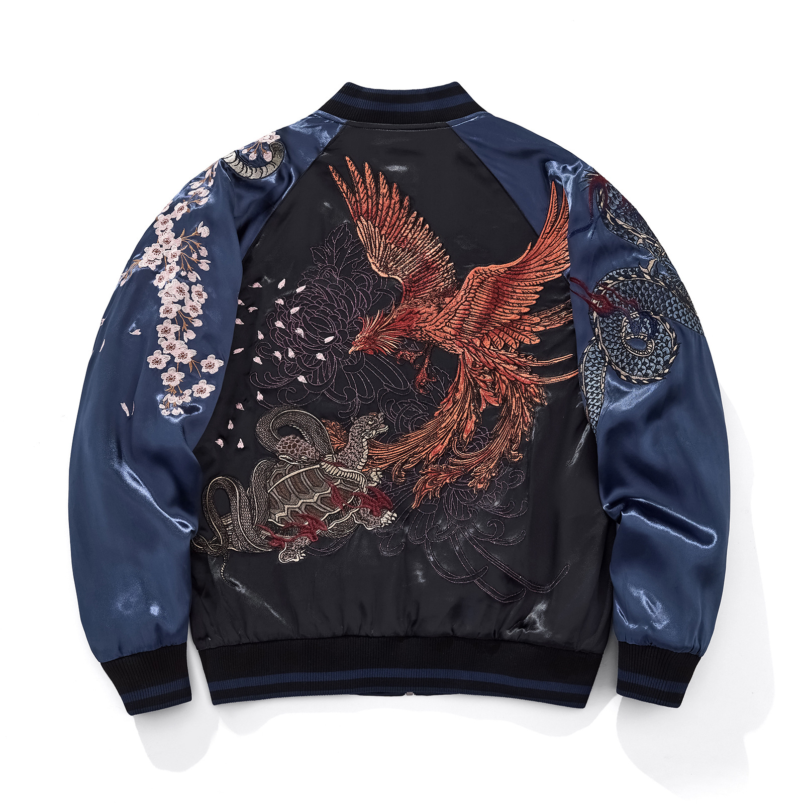 Heavy Duty Dragon And Tiger Four Divine Beasts Embroidered Baseball Jacket