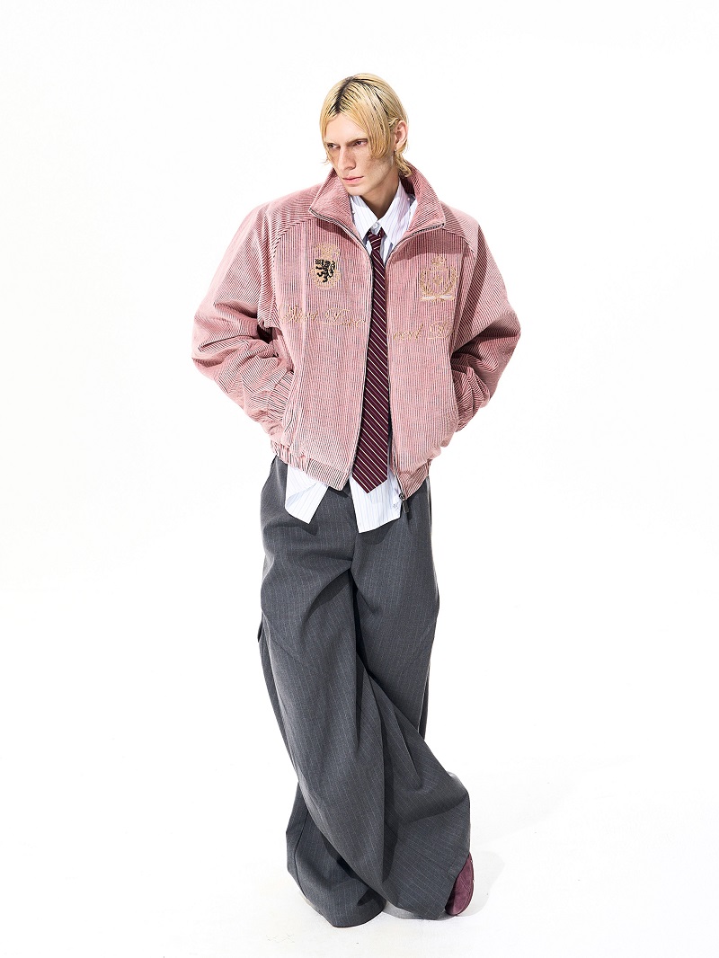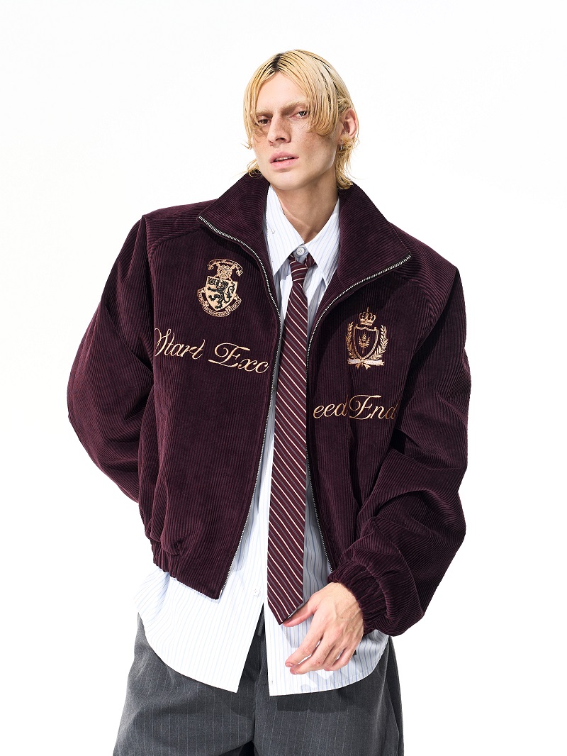 Men's Autumn And Winter Noble Embroidered Badge Men's Stand Collar Jacket