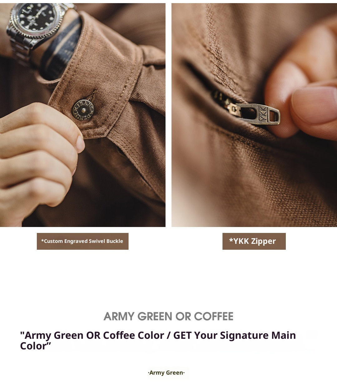 Color: army green, coffee color