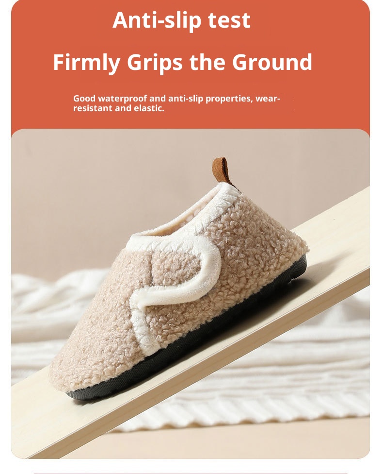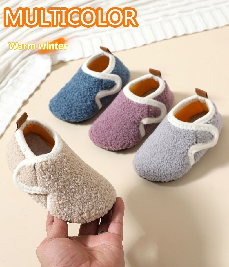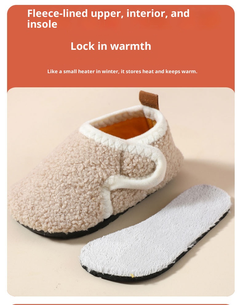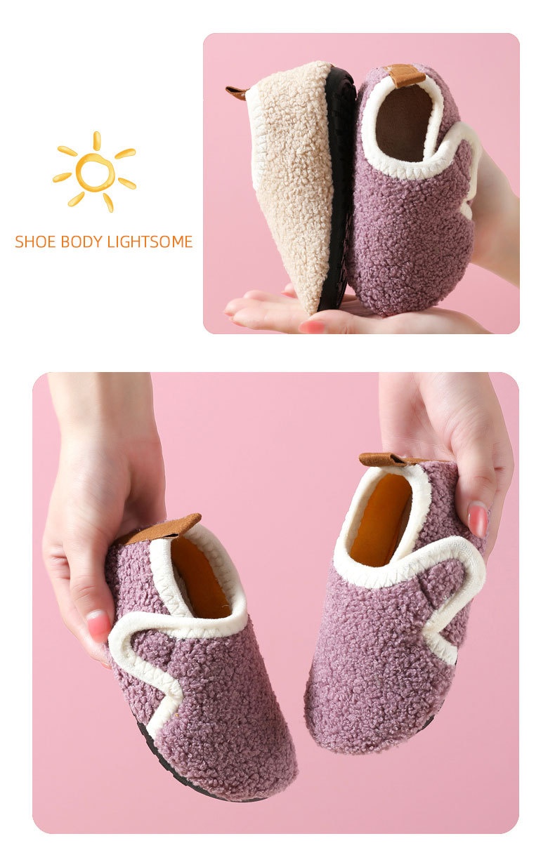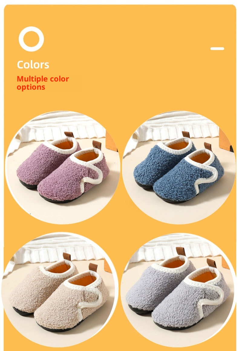 Autumn And Winter Children's Cotton Slippers With Fleece, Anti-slip Soft Sole