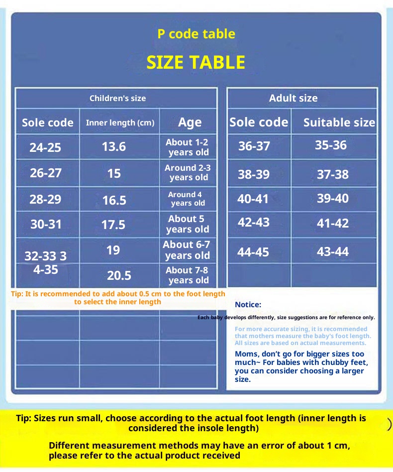 Sizes: 24-25 size inner length 13.6 cm, 26-27 size inner length 15 cm, 28-29 size inner length 16.5 cm, 30-31 size inner length 17.5 cm, 32-33 size inner length 19 cm, 34-35 size inner length 20.5 cm