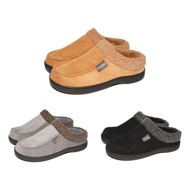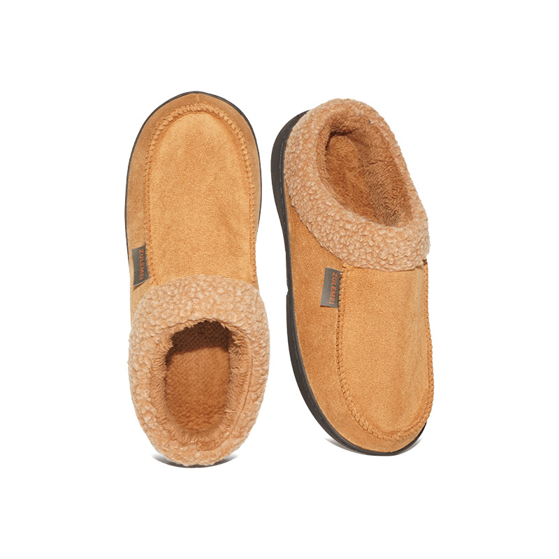 Household Winter Men's Warm Plush Fleece-Lined Thickened Non-slip Cotton Slippers