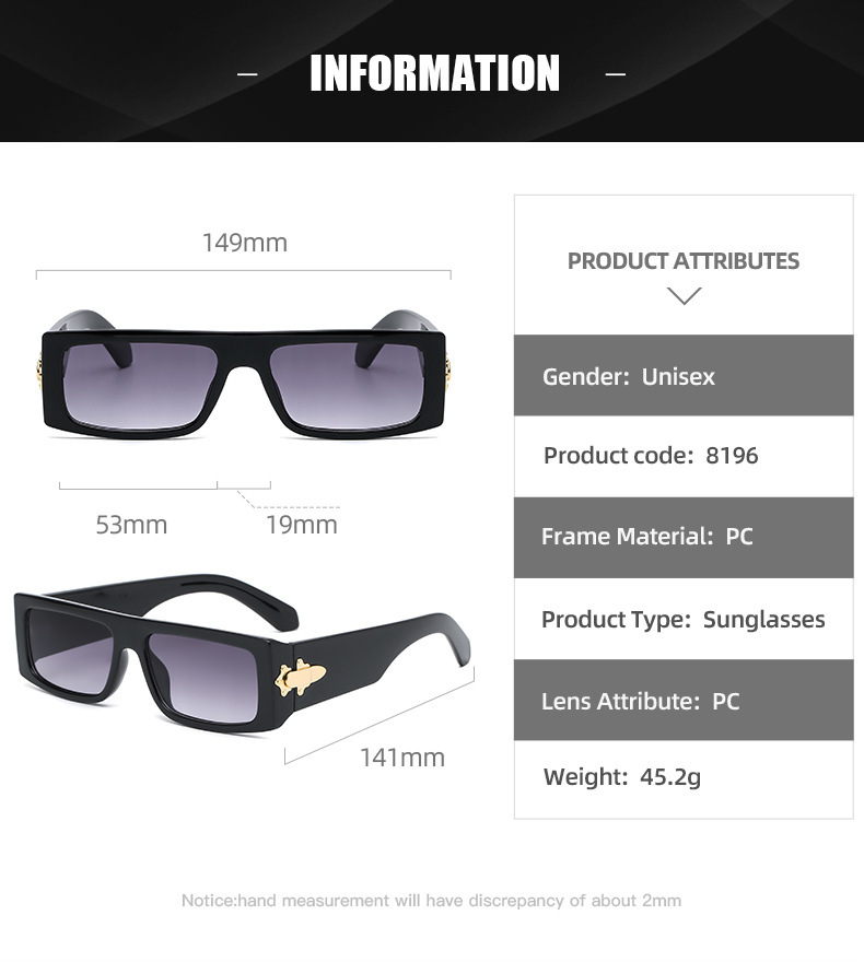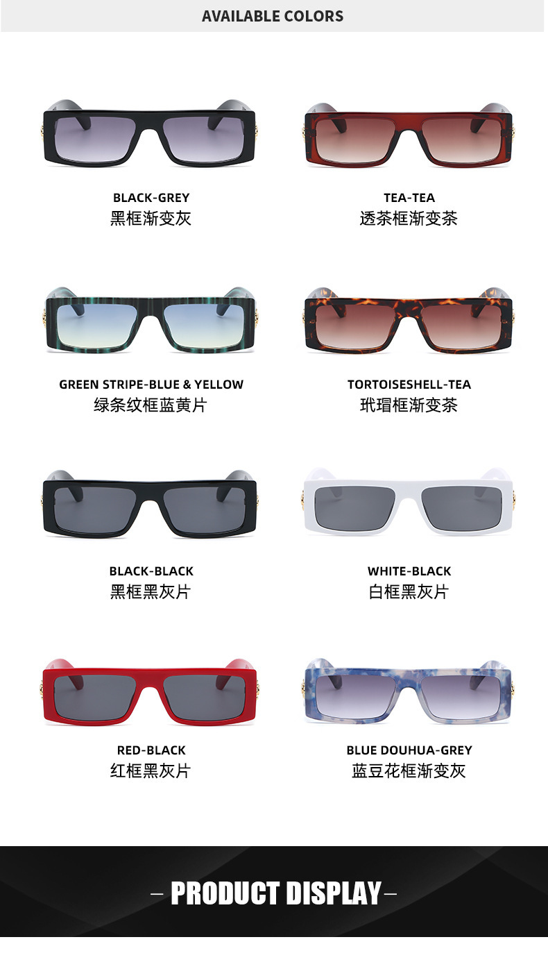 Color: Black frame gradient Gray, tea frame gradient tea, green stripe frame blue and yellow slice, hawksbill frame gradient tea, black frame black and gray lens, white frame black and gray lens, red frame black and gray lens, blue tofu pudding frame gradient Gray