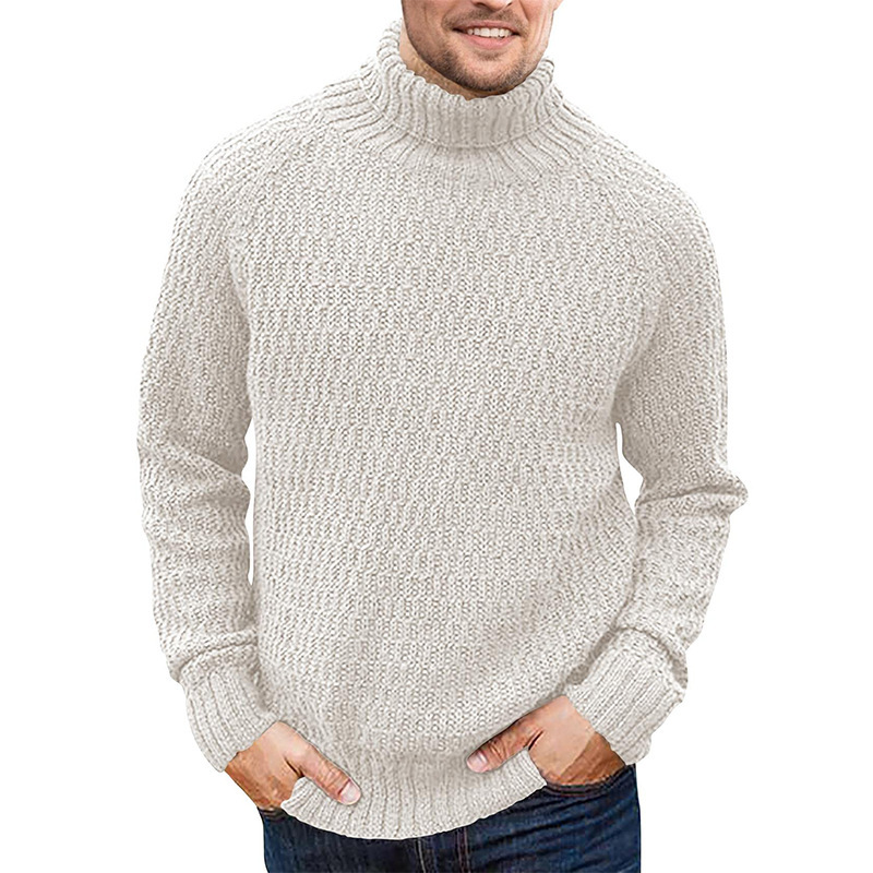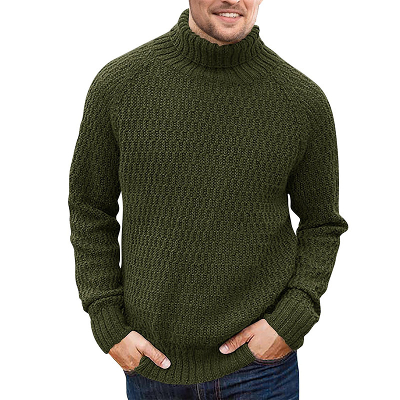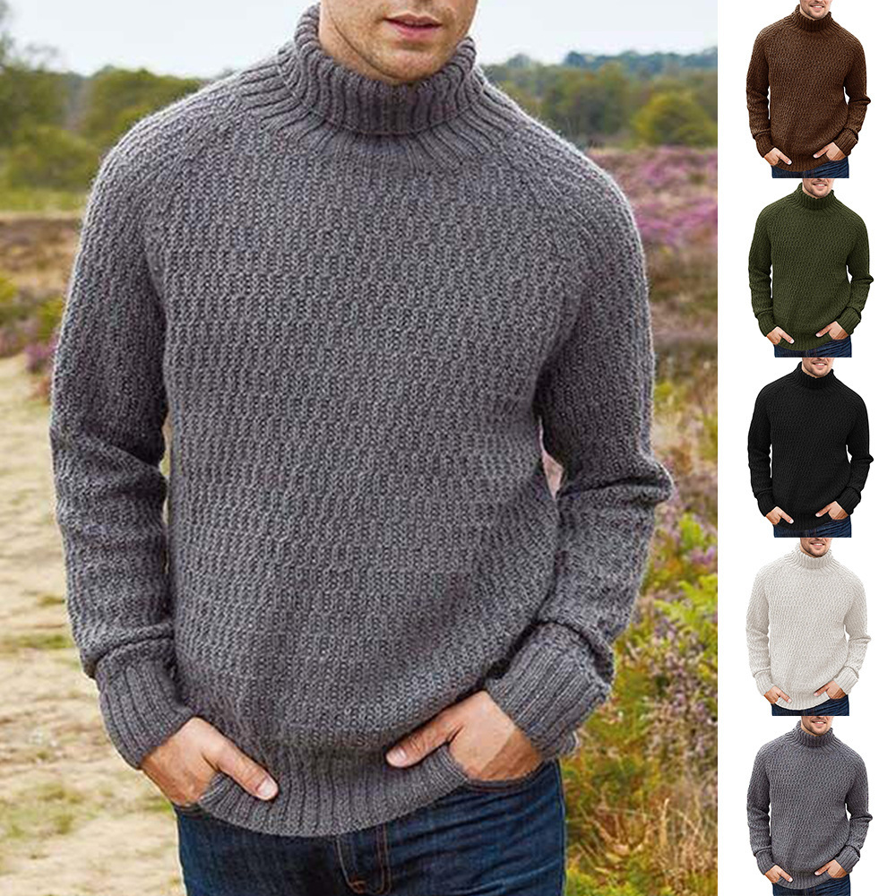Men's High Collar Solid Color Long Sleeve Knitting Twisted Sweater