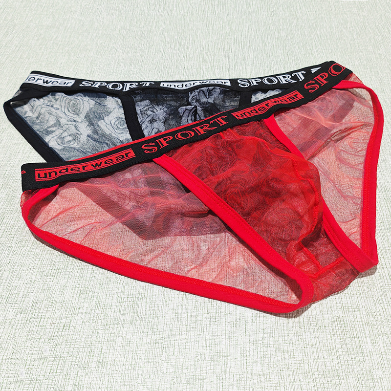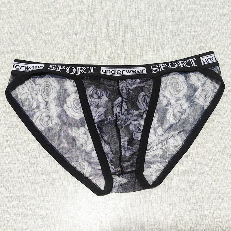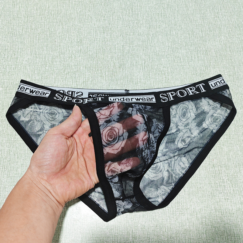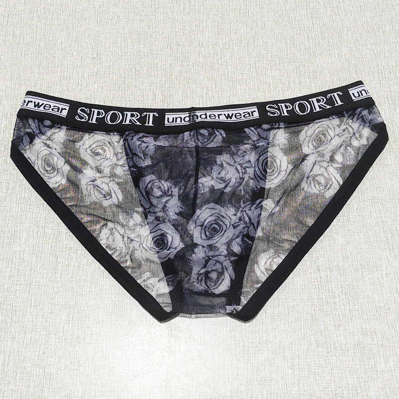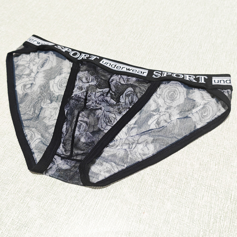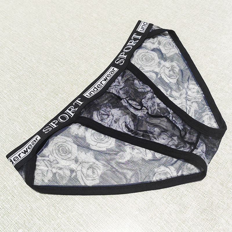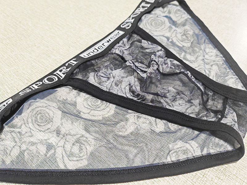 Printed Mesh Rose Men's High-slit G-string Panties See-through