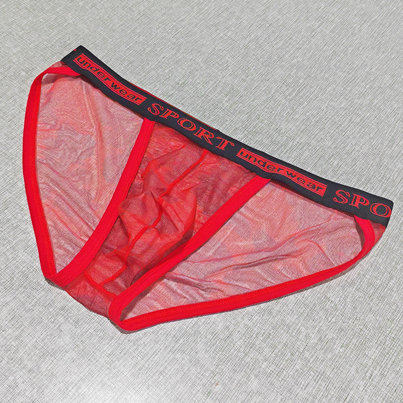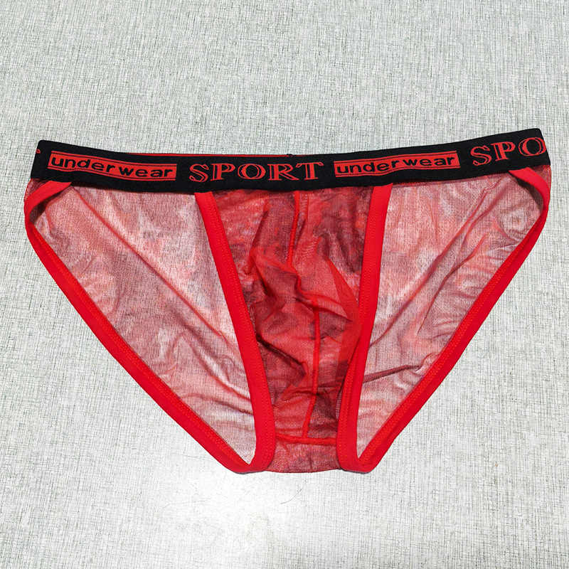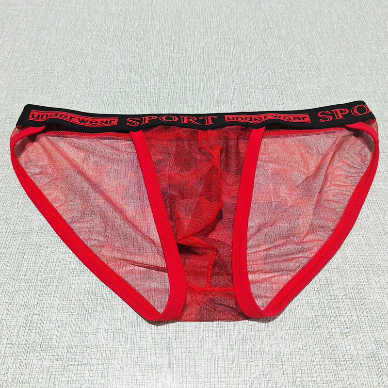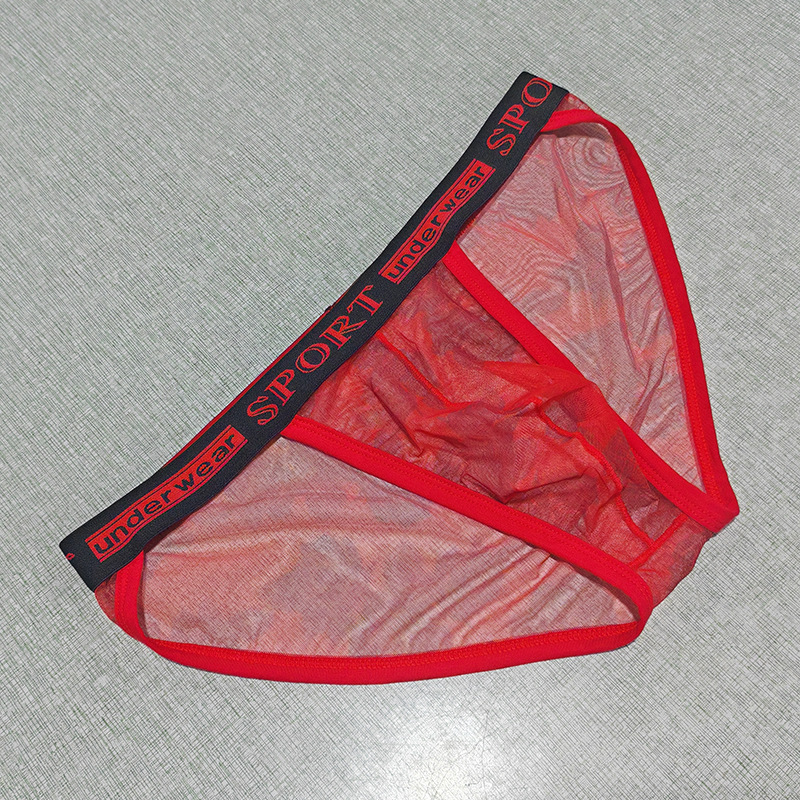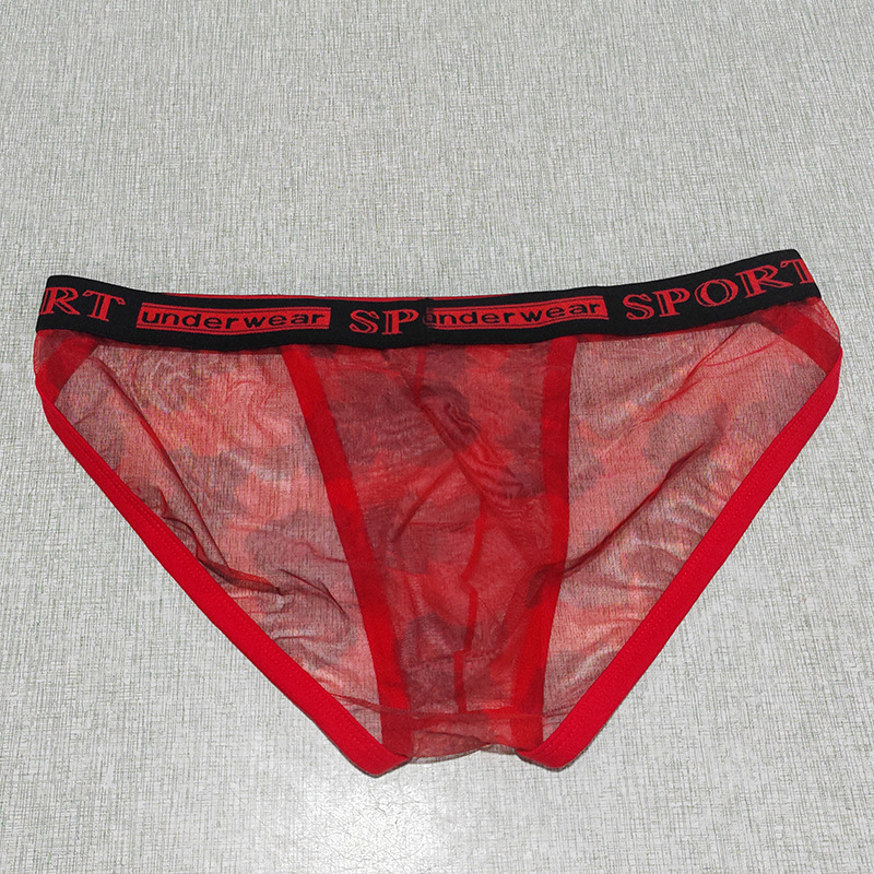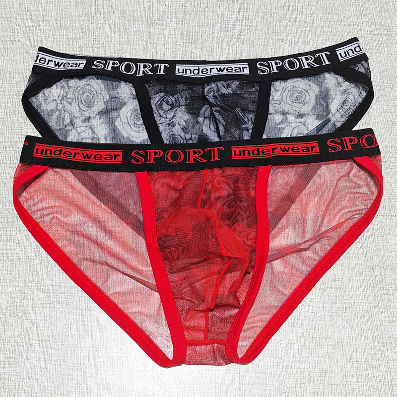 Printed Mesh Rose Men's High-slit G-string Panties See-through
