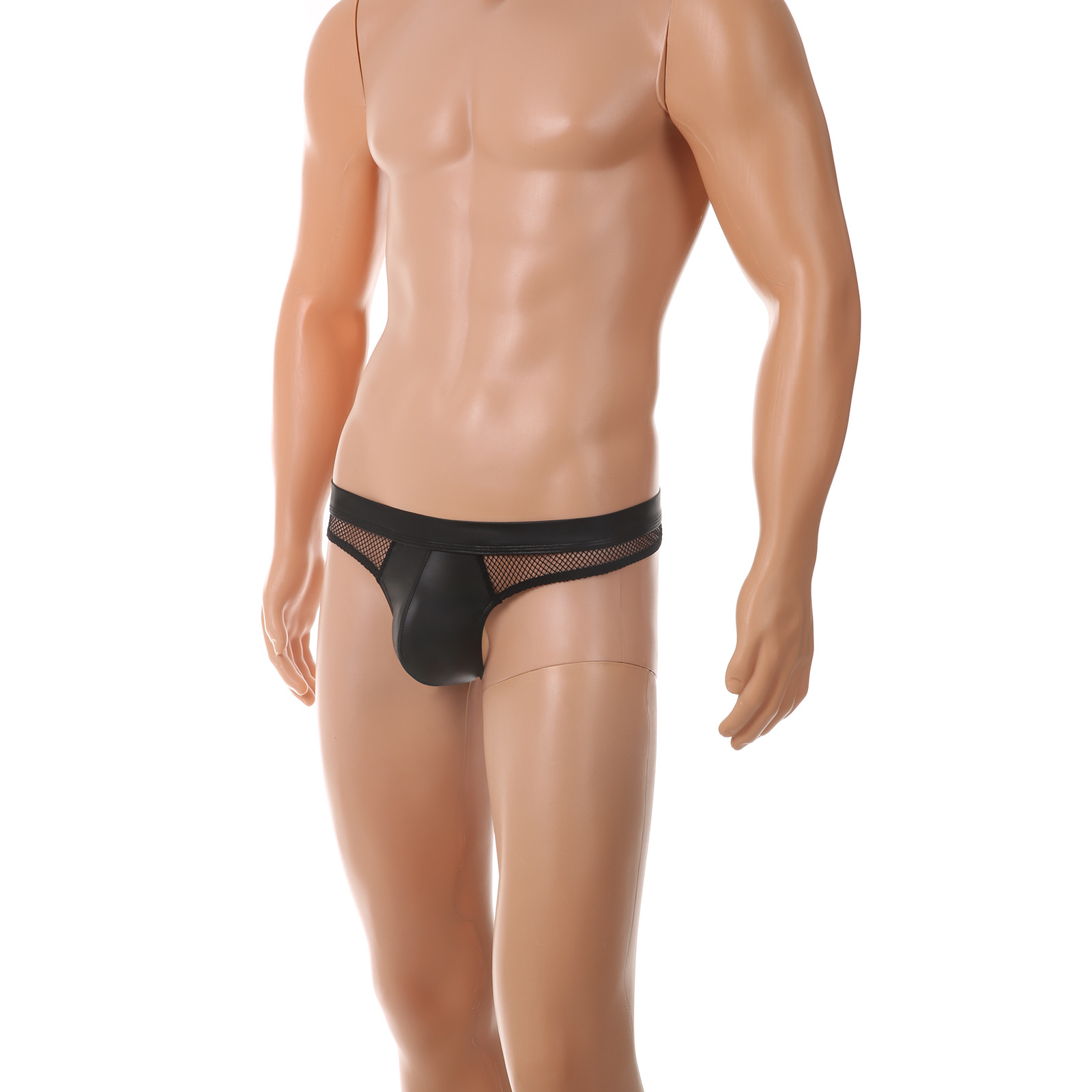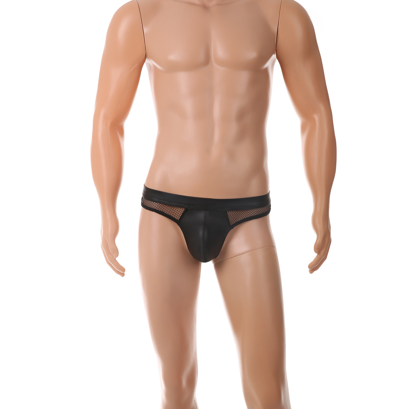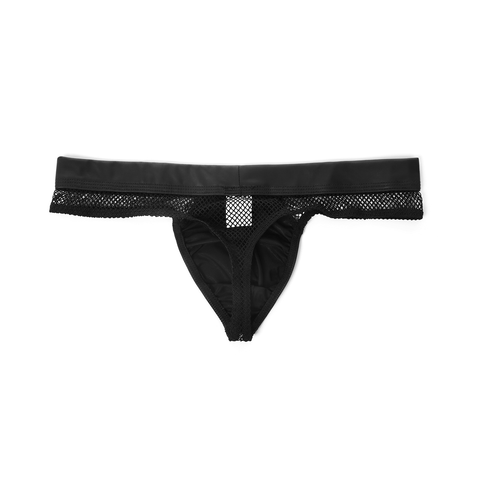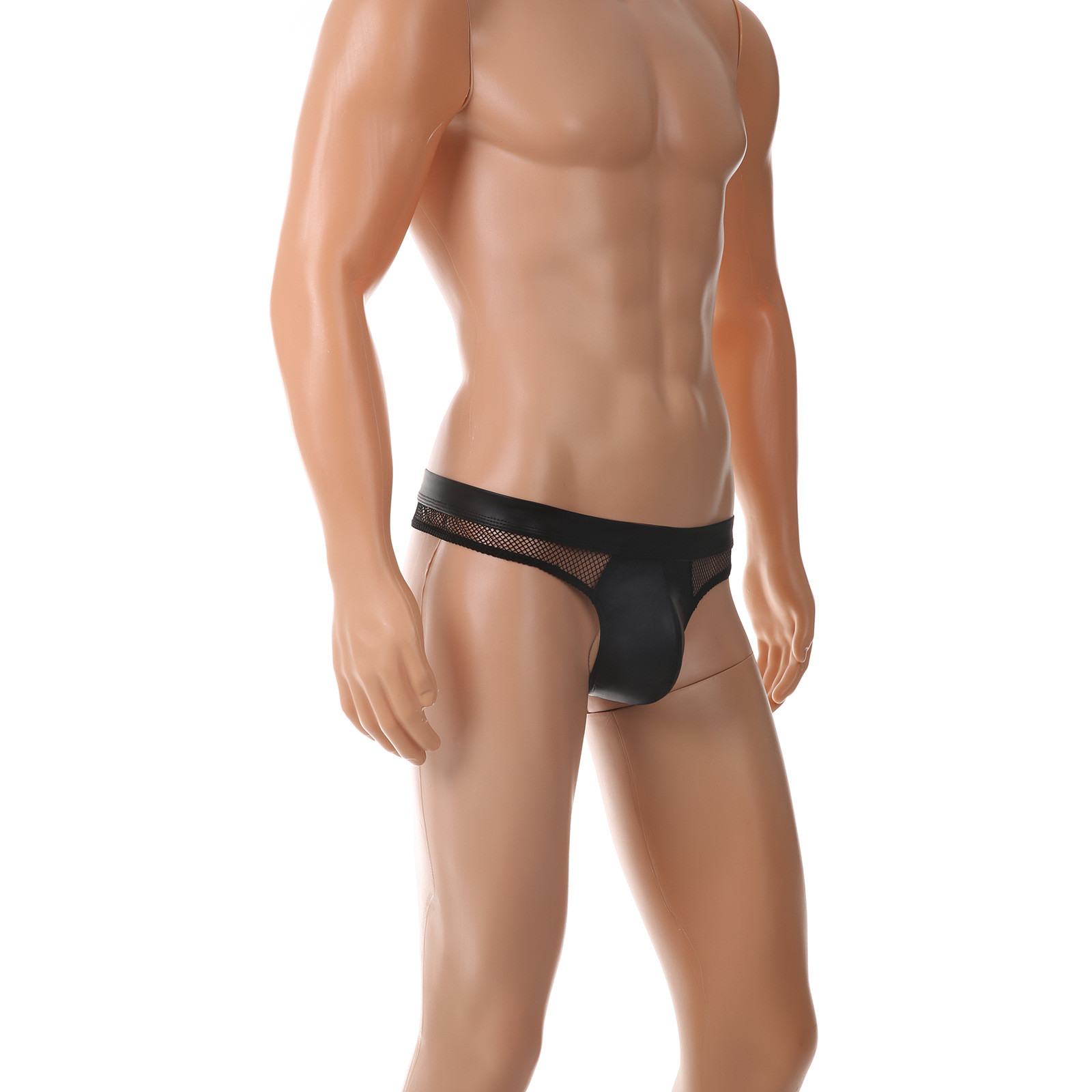 Trendy Patent Leather Color-block Mesh Low-rise Shorts
