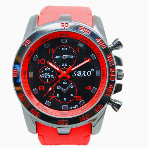 SBAO Silica Gel Watch Men's Fashion Watch Waterproof PU Belt Quartz Wrist Watch